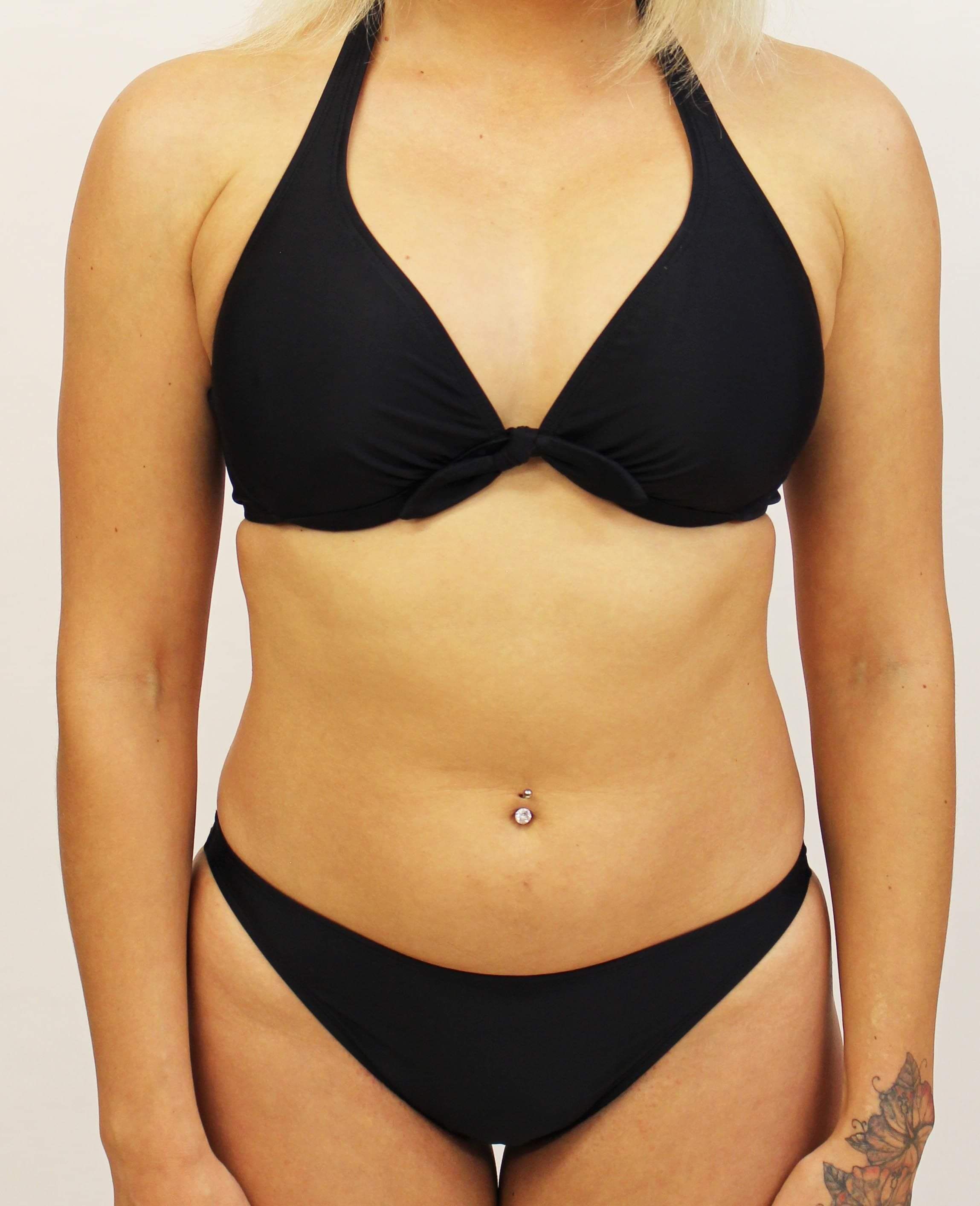 Shaped bikini top with neck ties and clasp on back. Has pockets in the cups so that a soft cup can be added. Suitable for a B-C cup.