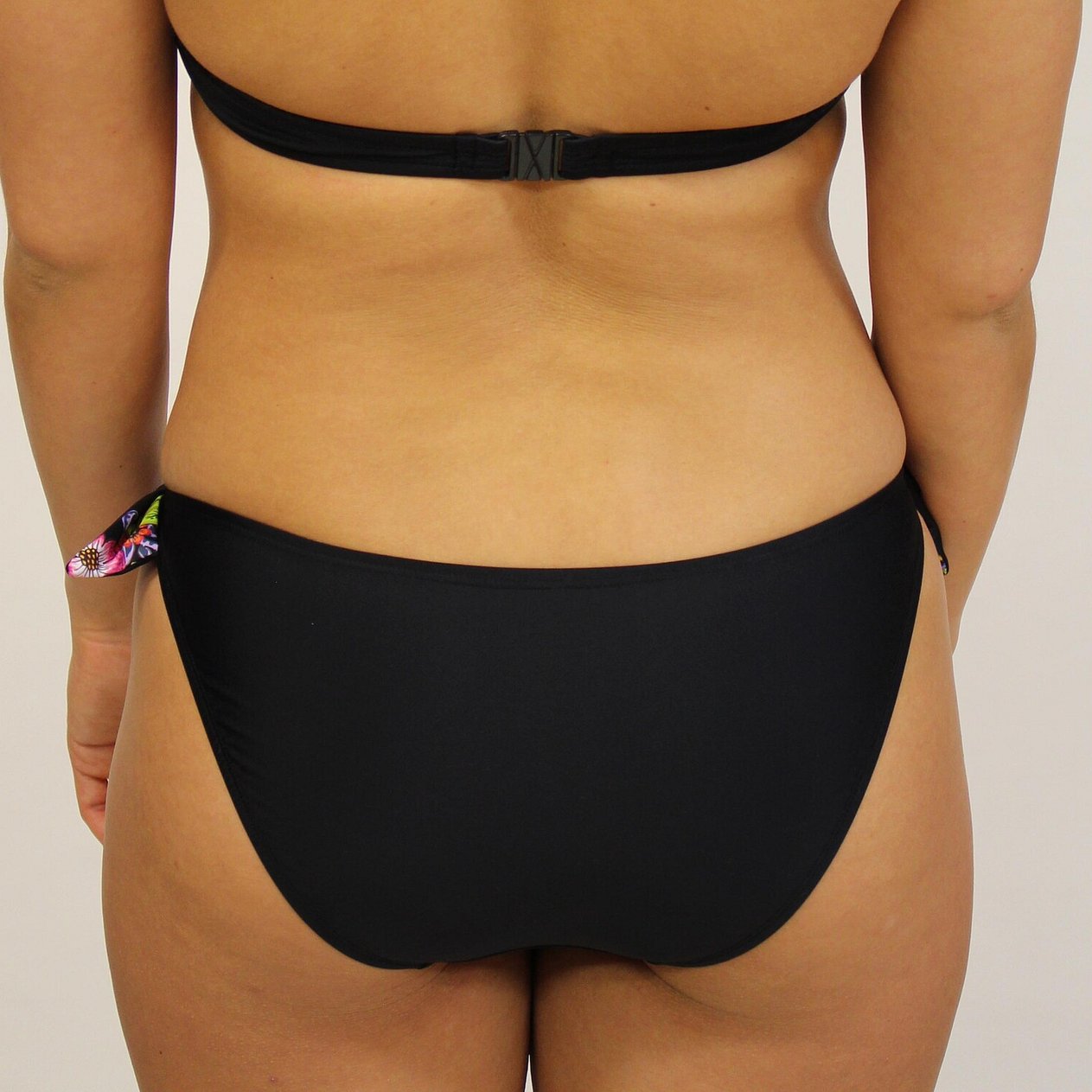 This style sits low, just on the hip bone. It has a medium legline and good coverage across the seat. It has decorative contrast trim bows on each hip, these bows are removable so you can wear them with or without the bows. We have this style available in black online and you can have the contrast bows to match the colour of your top, in any one of our available colours.