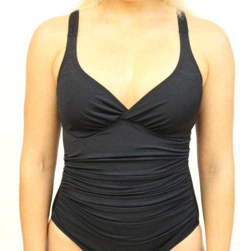 Rita Starfish Swimwear one piece swimsuit, style has a flat centre front panel with rouched side paneling